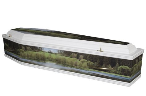 Our traditional style has square ends and plaited willow edge built around a strong timber frame with solid base, suitable for traditional burial in a cemetery green burials and cremation.